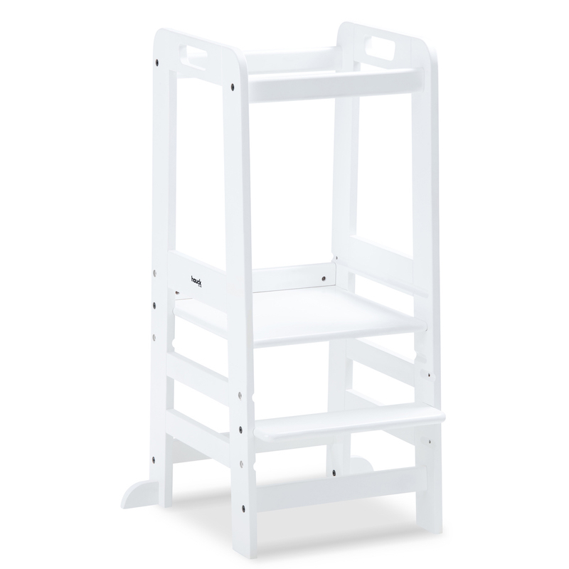 V závislosti na výšce vašeho dítěte můžete stupínek a hlavní stání nastavit do tří různých výšek – 33, 39, a 45 cm. Robustní konstrukce umožňuje vašemu dítěti používat věž až do 40 kg, ať už v kuchyni, u jídelního stolu nebo u umyvadla v koupelně.